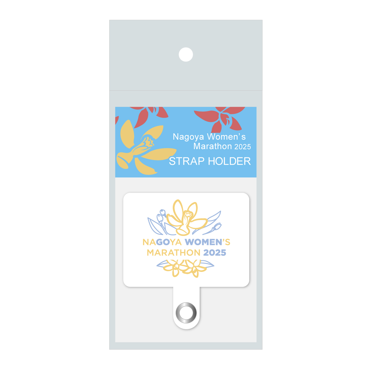 名古屋ウィメンズマラソン2025のロゴをデザインしたスマホストラップホルダーです。